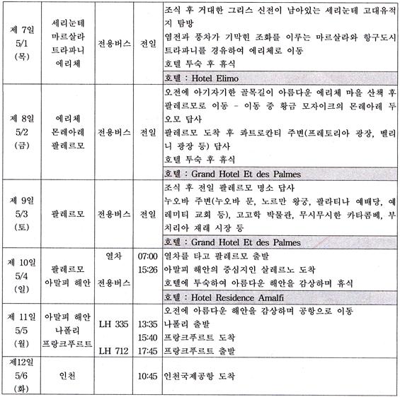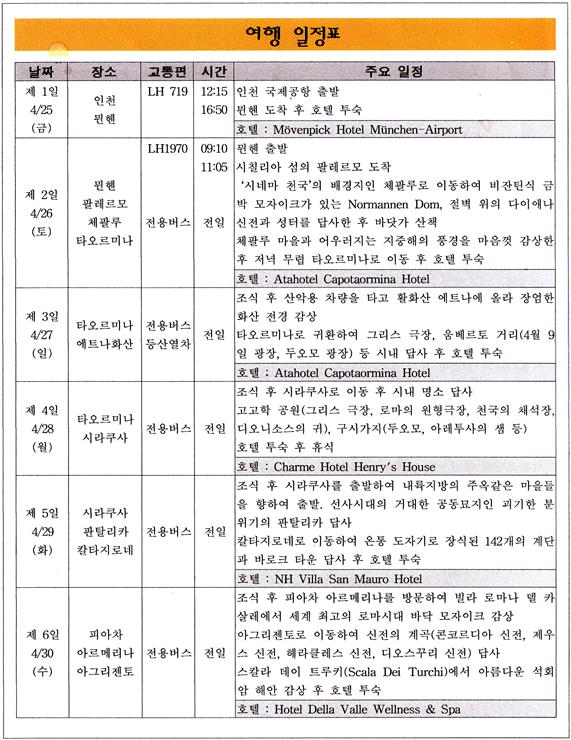 | 이 글은 박길란님의 여행후기입니다. 박길란님은 2014년 4월 25일부터 5월 6일까지 12일간 테마세이투어와 함께 이탈리아 시칠리아와 아말피 여행을 다녀오셨습니다. 글을 보내 주셔서 감사합니다. |