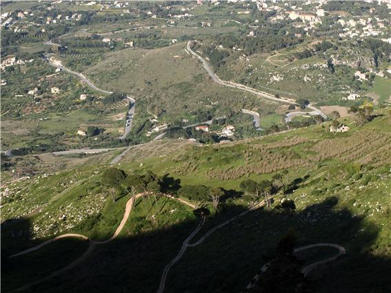 노르만 성채에서 내려다보면 에리체 산허리를 휘감아 도는 길이 보인다,