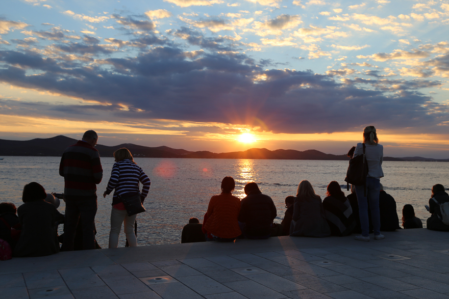 그리고 자다르에서 본 붉은색의 노을도 빼놓을 수 없다. 해질 무렵 모두 바닷가에 걸터앉아 노을을 기다리며 숨을 죽이고 있을 때, 넘실거리는 파도가 바다오르간을 치며 만들어내는 아름다운 불협화음 연주 또한 절정을 달리고 있었다. 이윽고 해가 떨어지기 시작했고 그 평온했던 시간 속 하늘에 펼쳐진 아름답고 황홀한 붉은 색은 우리들의 마음까지 붉게 물들였다.